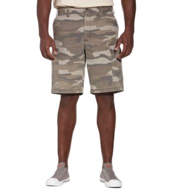 Shorts. Add rugged style to your summertime collection with these fashionable cargo shorts. Cargo pockets add rugged style to any look Side pockets hold your keys and cell Back pockets are perfect for a wallet Modern flat-front styling Featured in Camo Cotton Machine wash Imported