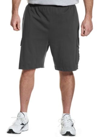 Shorts. These cargo shorts with comfortable elastic waist are perfect for working out or relaxing. Side and cargo pockets offer ultimate storage Elasticized waistband adjusts to your build Featured in Granite Cotton Machine wash Imported