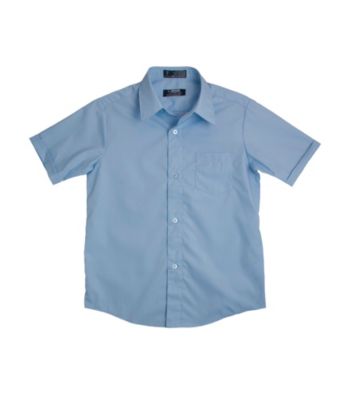 Tops. Web exclusive! He ll be the most dapper dude in the room wearing this fashionable dress shirt! From toddlers to handsome young men, the French Toast Boys' 2T-20 Blue Short Sleeve Classic Dress Shirt ensures a stylish appearance every time. Perfect for pairing with jeans, khakis or cargo shorts, this short sleeve dress shirt features an expandable collar for extra breathing room, round cuffs for that grown-up look and wrinkle-no-more fabric for easy care. Blue Wrinkle No More fabric Machine wash Cotton/Polyester Imported